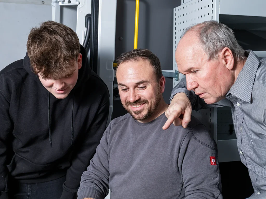 Um diesen hohen Anforderungen gerecht zu werden, planen wir mit Ihnen zusammen am CAD-Computer Ihre individuelle Fahrzeuginneneinrichtung – auch gern mit Ihren Mitarbeitern bei Ihnen im Büro. Das Ergebnis wird dann in unserer Fachwerkstatt von Einbauprofis exakt und termingerecht für Sie umgesetzt.